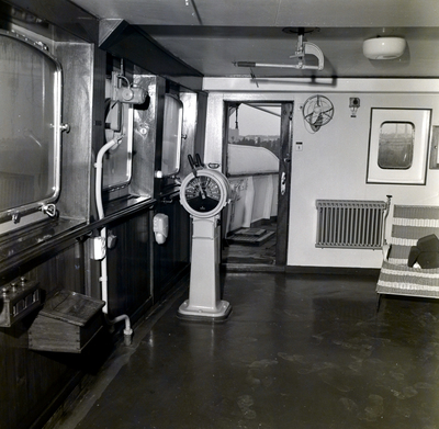 M/V Orieo bridge. An engine order telegraph is in the room. Photo taken for Fowler and White.