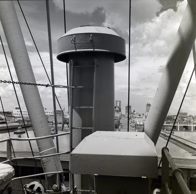 Transoceanic Freedom. An unidentified city can be seen in the background. Photo taken for Fowler and White.