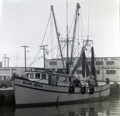 Gandy, George Skip IV, "Shrimp Boat Blue Seas for Fowler, White, and Gillen, H" (1970). Gandy Photographs - General, Culture, Politics. Image 4433.