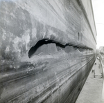 Barge Patricia Sheridan. Close up of a large gash in the hull. Photo taken for Fowler and White.