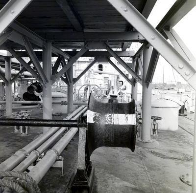 USNS Tallulah deck. Close up of a large deck winch. Photo taken for Fowler, White, H., G., and K.