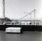 USNS Tallulah deck. The ship is next to a platform in the water. Photo taken for Fowler, White, H., G., and K.
