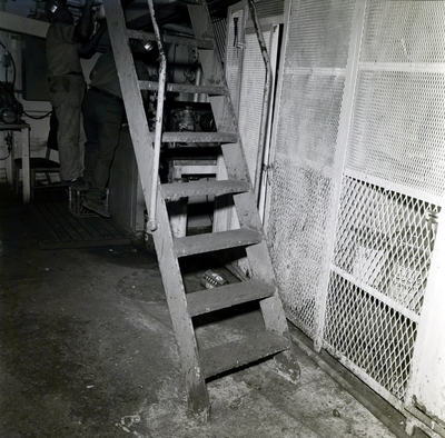 Tugboat D. J. Sheridan. Close up of a metal staircase. Photo taken for Fowler, White, G., H., K., and B.