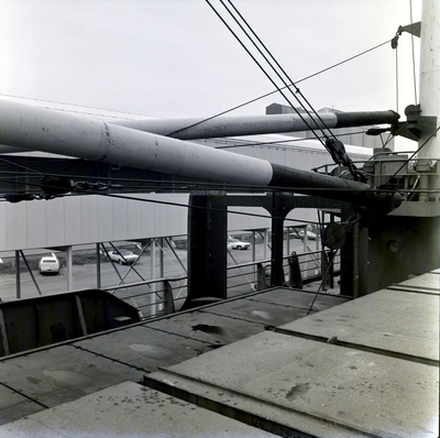M/V Kings North deck. A pair of horizontal booms and a pulley system are above the deck. Photo taken for Fowler, White, Gillen, and Humkey.