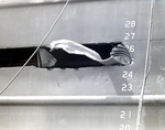 Barge Patricia Sheridan. A large gash is in its port side hull. Photo taken for Fowler and White.