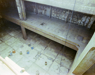 S. S. Penny interior hold. Several steel drums are in the hold. Photo taken for Fowler and White.