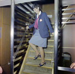 A staircase on the cruise ship Vera Cruze. A woman wearing heeled shoes is taking a step down the stairs. Photo taken for Fowler and White.