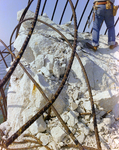 Skyway Bridge in Tampa Bay, Florida. A worker stands on a section of a damaged concrete pier. Photo taken for Fowler and White.
