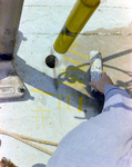 Skyway Bridge in Tampa Bay, Florida. A worker holds a cylinder of concrete removed from a section of pier. Photo taken for Fowler and White.