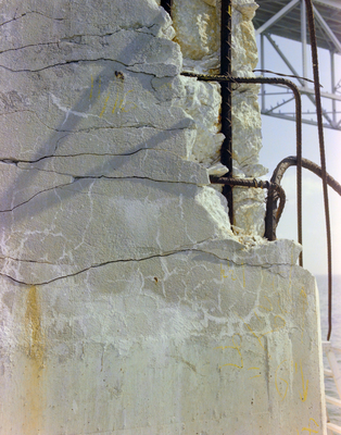 Skyway Bridge in Tampa Bay, Florida. Close up of a section of damaged concrete pier. Photo taken for Fowler and White.