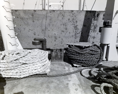 M/V Naxos deck. Rope is coiled on deck. Photo taken for Fowler and White.