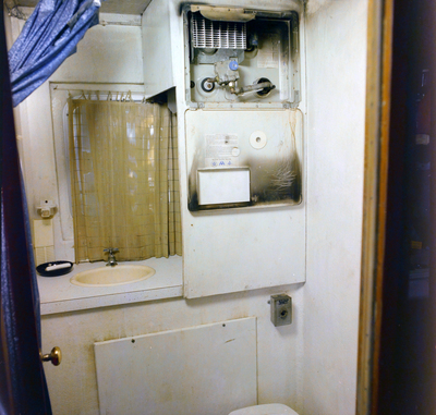 Shrimp boat Toomer Boys. A photo of a water heater with its panel open next to a window and sink. Photo taken for Fowler and White.