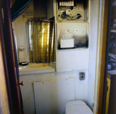 Shrimp boat Toomer Boys. A photo of a water heater with its panel open next to a window and sink. Photo taken for Fowler and White.
