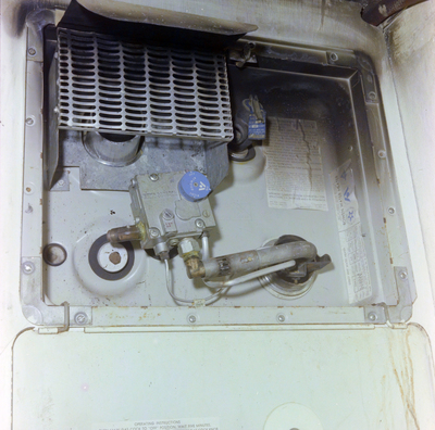 Shrimp boat Toomer Boys. A photo of a water heater with its panel open. Photo taken for Fowler and White.