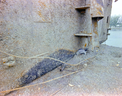 An unidentified metal structure at a junk yard. Photo taken for Fowler and White.