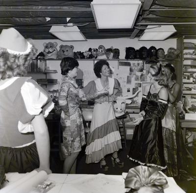 Female employees of General Telephone & Electronics Corporation get ready for a costume party.