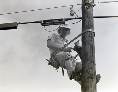 Gandy, George Skip IV, "Telephone Lineman Working on Line, A" (1970). Gandy Photographs - General, Culture, Politics. Image 5138.