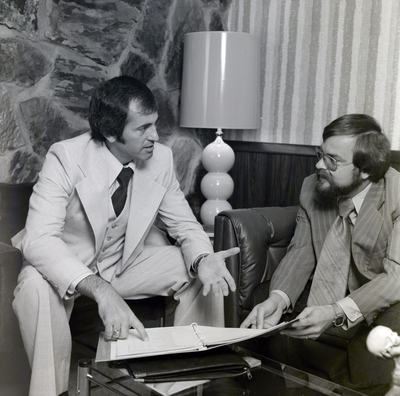 Gandy, George Skip IV, "Two General Telephone and Electronics Corporation Employees Discuss, C" (1970). Gandy Photographs - General, Culture, Politics. Image 5179.