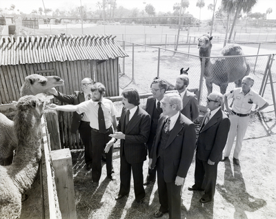 Gandy, George Skip IV, "General Telephone and Electronics Corporation Employees with Camels at Busch Gardens, Tampa, Florida, D" (1970). Gandy Photographs - General, Culture, Politics. Image 5203.