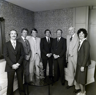 Gandy, George Skip IV, "Group Portrait of General Telephone and Electronics Corporation Employees in a Lounge, D" (1970). Gandy Photographs - General, Culture, Politics. Image 5210.