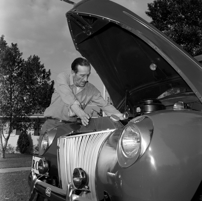 Gandy, George Skip IV, "Florida Steel Employee with Early Ford V8, B" (1974). Gandy Photographs - General, Culture, Politics. Image 5224.