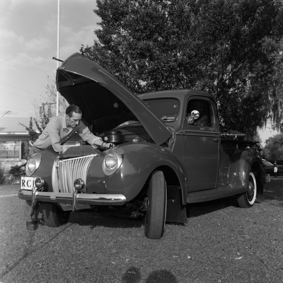 Gandy, George Skip IV, "Florida Steel Employee with Early Ford V8, E" (1974). Gandy Photographs - General, Culture, Politics. Image 5228.