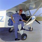 Alfred L. "Sky Patrol" Ford poses in front of the two-seater 1962 Piper Colt plane nicknamed "Tillie the Toiler" in February 1972.