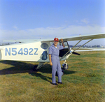 Alfred L. "Sky Patrol" Ford poses in front of the two-seater 1962 Piper Colt plane nicknamed "Tillie the Toiler" in February 1972.