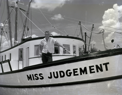 Gandy, George Skip IV, "A Man Standing Aboard Miss Judgement" (1960). Gandy Photographs - General, Culture, Politics. Image 5388.