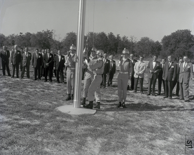Gandy, George Skip IV, "Flag Raising Ceremony By Globe Union Incorporated" (1960). Gandy Photographs - General, Culture, Politics. Image 5414.