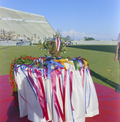 Gandy, George Skip IV, "The Gold Cup Trophy Display at Tampa Stadium, Tampa, Florida, B" (1970). Gandy Photographs - General, Culture, Politics. Image 5453.