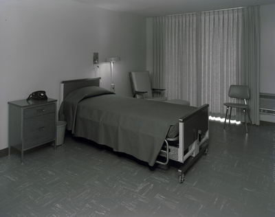 Gandy, George Skip IV, "Patient Room at the Golden Shores Convalescent Center" (1960). Gandy Photographs - General, Culture, Politics. Image 5483.