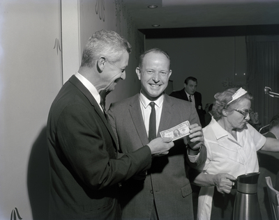 Gandy, George Skip IV, "Governor Handing a Dollar Note at the Cold War Conference" (1963). Gandy Photographs - General, Culture, Politics. Image 5570.