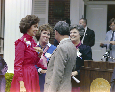 Gandy, George Skip IV, "Governor Bob Graham Talking to Women at His Mansion Party, A" (1982). Gandy Photographs - General, Culture, Politics. Image 5581.