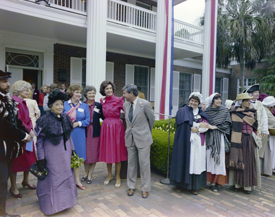 Gandy, George Skip IV, "Governor Bob Graham Talking to Women at His Mansion Party, B" (1982). Gandy Photographs - General, Culture, Politics. Image 5582.