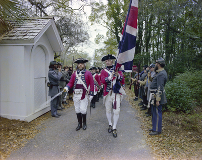 Gandy, George Skip IV, "Colonial-Era Military Reenactment at the Governor's Mansion Party, C" (1982). Gandy Photographs - General, Culture, Politics. Image 5597.