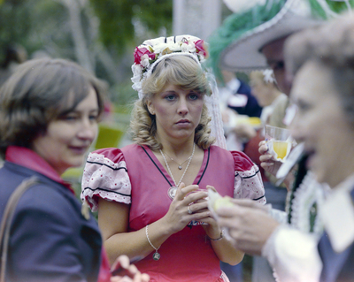 Gandy, George Skip IV, "Woman in Colorful Themed Costume at Governor's Mansion Party, A" (1982). Gandy Photographs - General, Culture, Politics. Image 5601.
