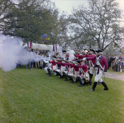Gandy, George Skip IV, "Colonial-Era Military Reenactment at the Governor's Mansion Party, H" (1982). Gandy Photographs - General, Culture, Politics. Image 5634.