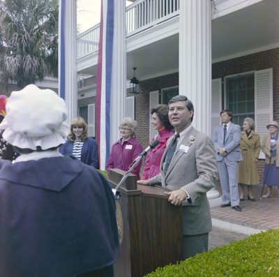 Gandy, George Skip IV, "Governor Bob Graham Giving a Speech at His Mansion Party, C" (1982). Gandy Photographs - General, Culture, Politics. Image 5640.