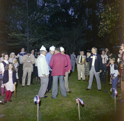 Gandy, George Skip IV, "Governor Bob Graham and Three Other Attendees In a White Hat at Governor's Mansion Party, D" (1982). Gandy Photographs - General, Culture, Politics. Image 5653.