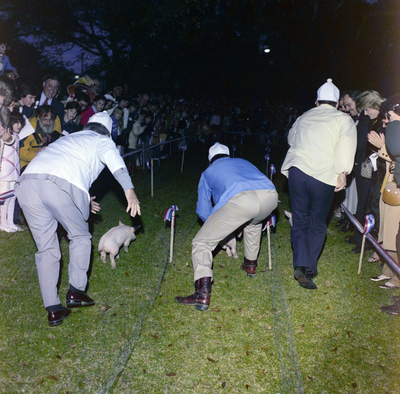 Gandy, George Skip IV, "Pig Race at Governor Bob Graham's Mansion Party, B" (1982). Gandy Photographs - General, Culture, Politics. Image 5658.