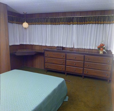 Gandy, George Skip IV, "Master Bedroom in Guerdon Industries Manufactured Home, B" (1960). Gandy Photographs - General, Culture, Politics. Image 5798.