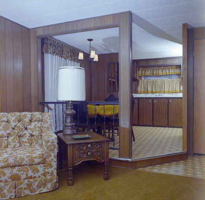 Gandy, George Skip IV, "View from Living Room into Dining Room and Kitchen in Guerdon Industries Manufactured Home, D" (1960). Gandy Photographs - General, Culture, Politics. Image 5806.