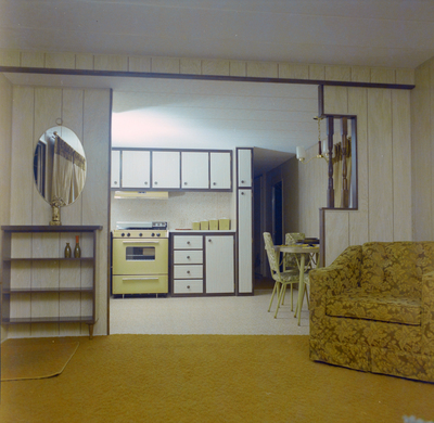 Gandy, George Skip IV, "View from Living Room into Kitchen and Dining Area in Guerdon Industries Manufactured Home, A" (1960). Gandy Photographs - General, Culture, Politics. Image 5828.