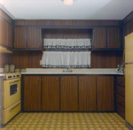 Gandy, George Skip IV, "Kitchen with Dark Paneled Cabinets in Guerdon Industries Manufactured Home, C" (1960). Gandy Photographs - General, Culture, Politics. Image 5835.