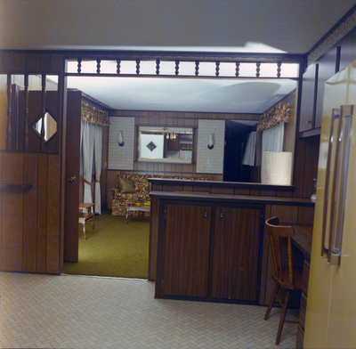 Gandy, George Skip IV, "Kitchen with View into Living Room in Guerdon Industries Manufactured Home, A" (1960). Gandy Photographs - General, Culture, Politics. Image 5839.