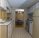 Gandy, George Skip IV, "Galley Kitchen Leading to Dining Room in Guerdon Industries Manufactured Home, C" (1960). Gandy Photographs - General, Culture, Politics. Image 5840.