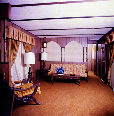 Gandy, George Skip IV, "Guerdon Industries Manufactured Home Living Room with Decorative Wall Features, A" (1960). Gandy Photographs - General, Culture, Politics. Image 5863.