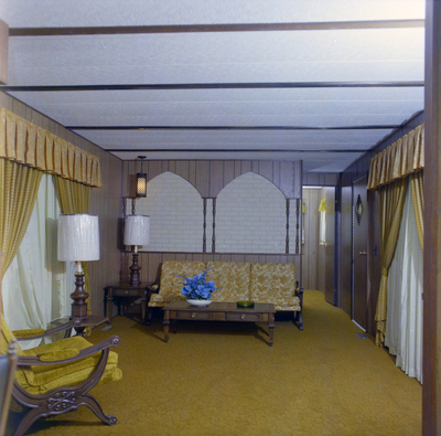 Gandy, George Skip IV, "Guerdon Industries Manufactured Home Living Room with Decorative Wall Features, B" (1960). Gandy Photographs - General, Culture, Politics. Image 5867.