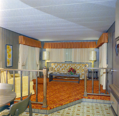 Gandy, George Skip IV, "Living Room with Raised Platform in Guerdon Industries Manufactured Home, I" (1960). Gandy Photographs - General, Culture, Politics. Image 5873.